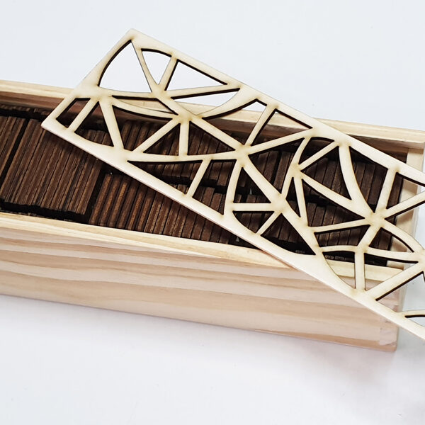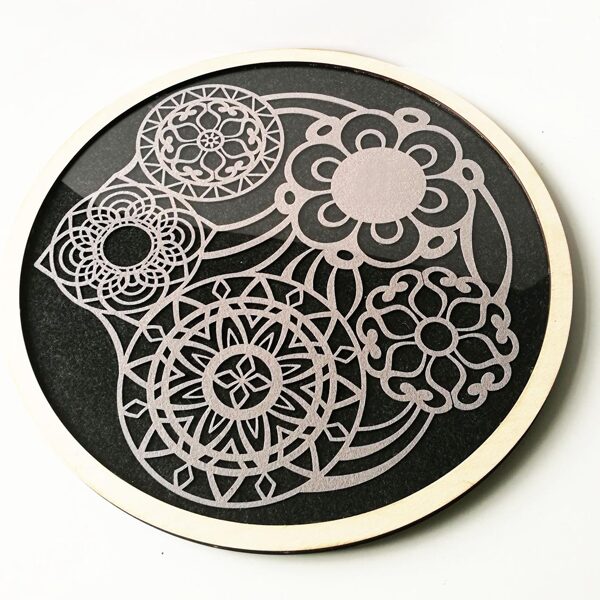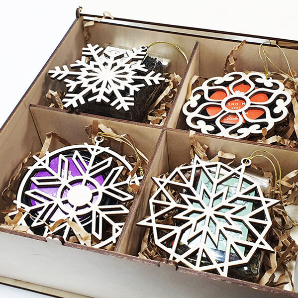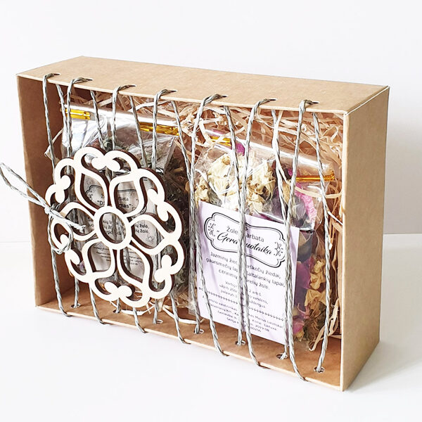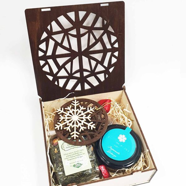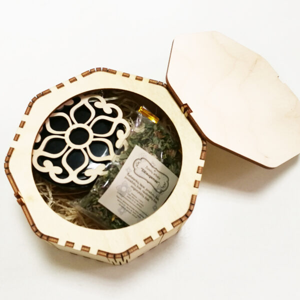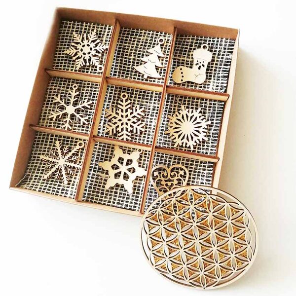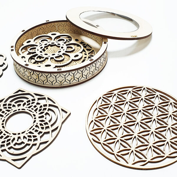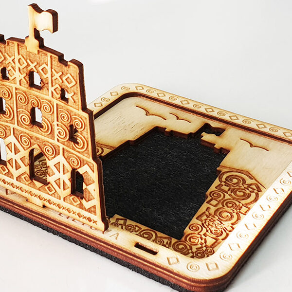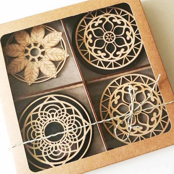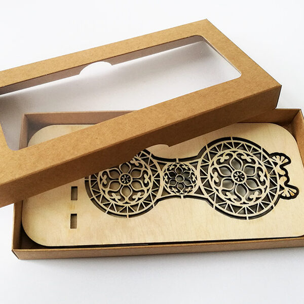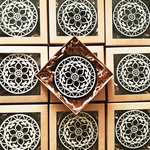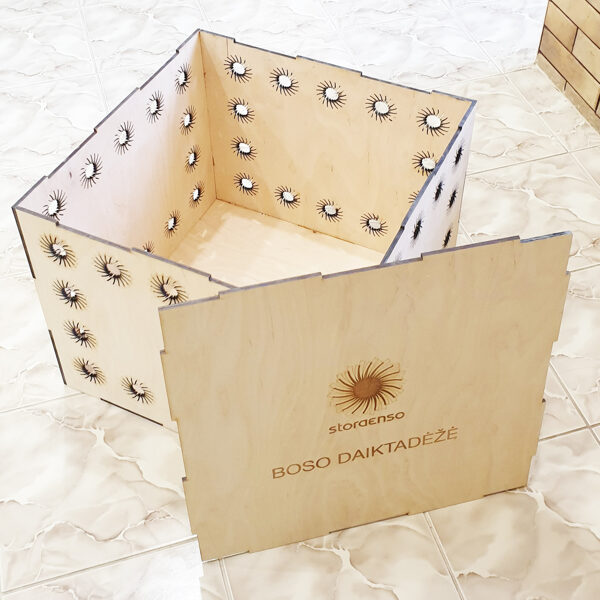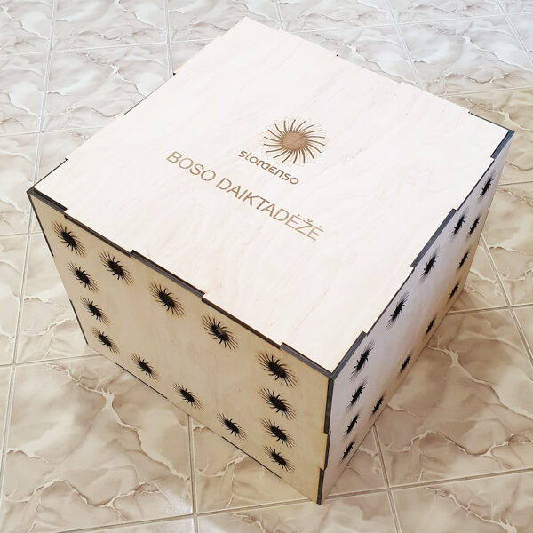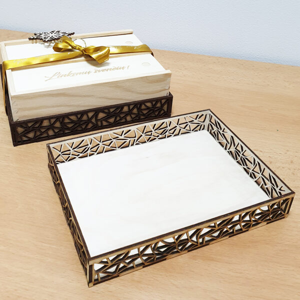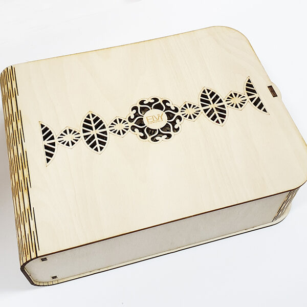 Padėkliukų, dėžučių ir dekoratyvinių verpsčių ornamentai sukurti remiantis lietuvių liaudies tautinių raštų motyvais. Stilizuoti augalų ir gyvūnų raštai perteikti per geometrines formas, neperkrautas detales ir dailiai išpildytais fragmentais sudaro puikų šiuolaikiškumo ir senosios istorijos ansamblį.